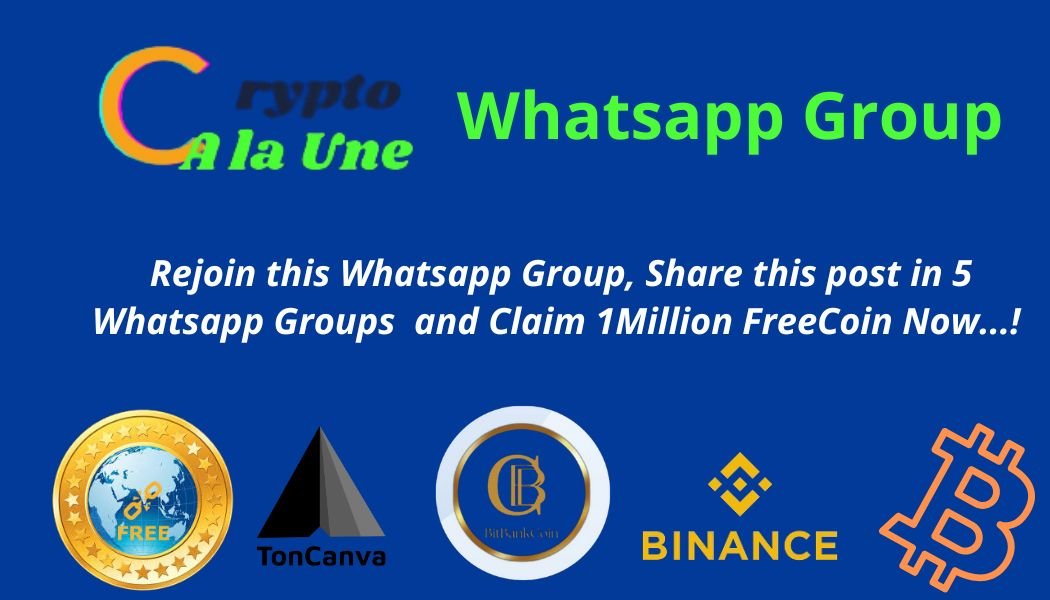 • Claim 5Million FreeCoin Now by Rejoining Cryptoalaune Whatsapp Group and Sharing the post in Your Everyday Reward Telegram group describing this in 5 other Whatsapp Groups! Claim Rewards