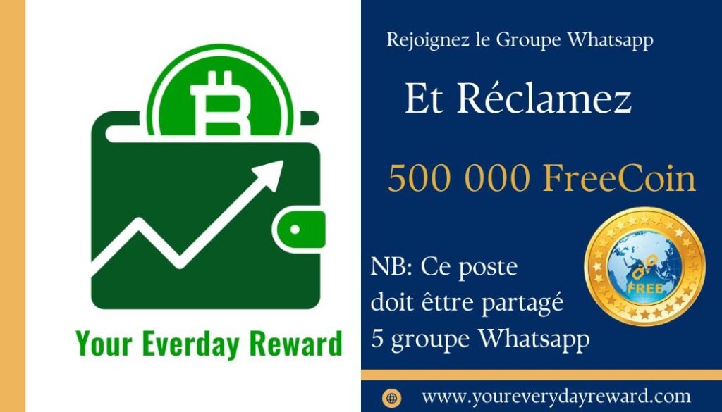 Posted on June 16, 2025June 22, 2025 By ClaimYourEverydayRewards No Comments on Obtenez 3Million FreeCoin (FreedomCoin) Gratuitement en Partageant ce post épinglé dans le Groupe Telegram de Your Everyday Reward dans 5 Groupes Cryptos Whatsapp!